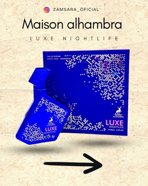 Maison Alhambra Luxe Nightlife es una fragancia seductora que evoca la energía vibrante de las noches urbanas. Inicia con un trío floral elegante de gardenia, clavel (carnation) y jazmín, ofreciendo una apertura cremosa y refinada